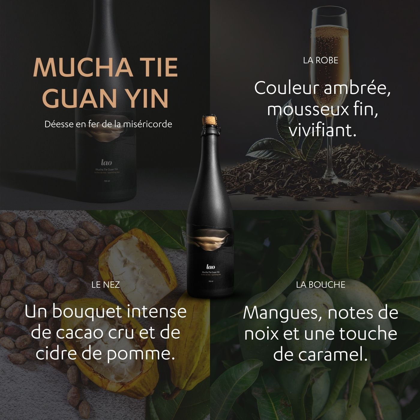 Chaque bouteille de Mucha Tie Guan Yin commence par une base de thé fermenté, vieillie plus de trois mois pour développer une structure naturelle, une acidité équilibrée et une profondeur chaleureuse.